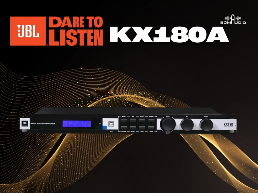 Vang số JBL KX180A là thiết bị xử lý âm thanh kỹ thuật số được nhiều dàn karaoke gia đình và phòng hát chuyên nghiệp tin dùng. Sản phẩm sở hữu khả năng tinh chỉnh chi tiết Echo, Reverb và Delay, giúp giọng hát trở nên trong trẻo, mượt mà và dễ hát hơn.
