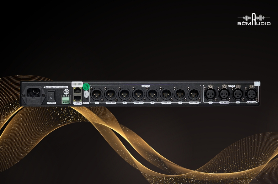 DBacoustic CD4008RTS Premium sử dụng chip DSP 32-bit kết hợp với bộ chuyển đổi AD/DA 24-bit và tốc độ lấy mẫu lên đến 96kHz, mang đến khả năng xử lý âm thanh mượt mà, rõ ràng và đầy chi tiết. Thiết bị hỗ trợ 4 đầu vào và 8 đầu ra tín hiệu độc lập, đồng thời tương thích với tín hiệu AES/EBU kỹ thuật số, đảm bảo khả năng phối ghép linh hoạt với nhiều hệ thống âm thanh khác nhau.