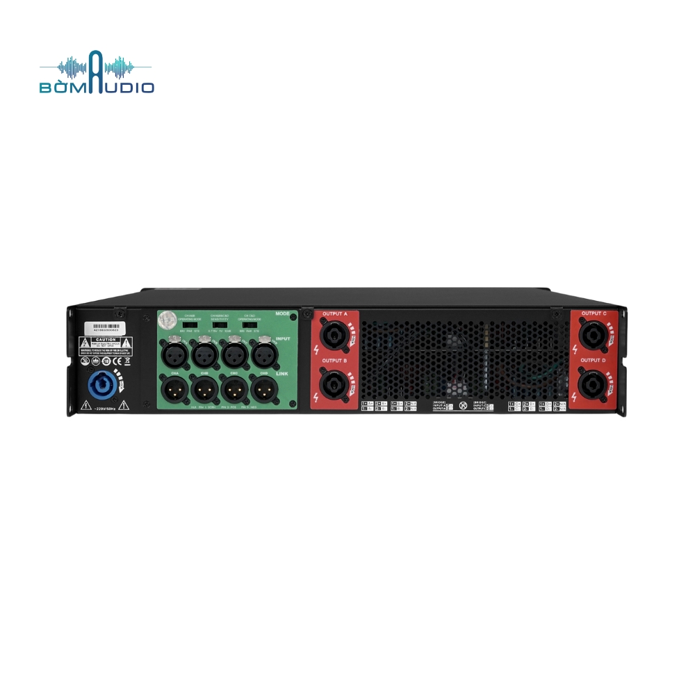 - Công suất 3200W x 2 kênh tại 8Ω và 5500W x 2 kênh tại 4Ω
