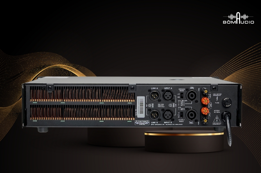 Giao diện mặt trước được bố trí trực quan với đèn báo tín hiệu, clip và bảo vệ, giúp người dùng dễ dàng kiểm soát trạng thái hoạt động của cục đẩy. Mặt sau thiết kế khoa học với đầy đủ cổng kết nối XLR input/link, Speakon và binding post, đảm bảo khả năng phối ghép linh hoạt với mọi hệ thống âm thanh từ karaoke, hội trường đến sân khấu chuyên nghiệp.