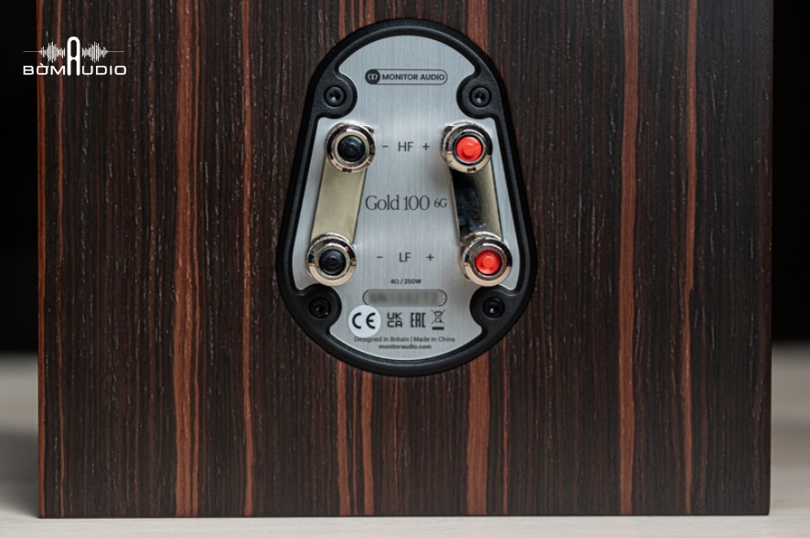 Loa được trang bị hai cặp cổng kết nối mạ vàng cao cấp, đảm bảo tín hiệu âm thanh ổn định và sạch nhiễu. Với độ nhạy 86,5 dB, trở kháng 4 Ohms, xử lý công suất liên tục 250W (CTA 426-B), và khả năng phối ghép với ampli có công suất từ 130 – 500W, Gold 100 6G mang đến sự linh hoạt tuyệt đối cho mọi hệ thống âm thanh, dù là nghe nhạc hay xem phim.