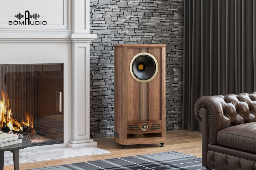 Phần thùng loa được chế tác từ gỗ bạch dương cao cấp, gia công tỉ mỉ với lớp hoàn thiện veneer tự nhiên, không chỉ mang lại vẻ đẹp tinh xảo mà còn giúp giảm cộng hưởng và tăng độ ổn định âm học. Tấm ê căng vải khung gỗ được thiết kế riêng, ôm trọn mặt trước loa, vừa bảo vệ củ loa vừa tôn lên vẻ cổ điển quý phái của sản phẩm.