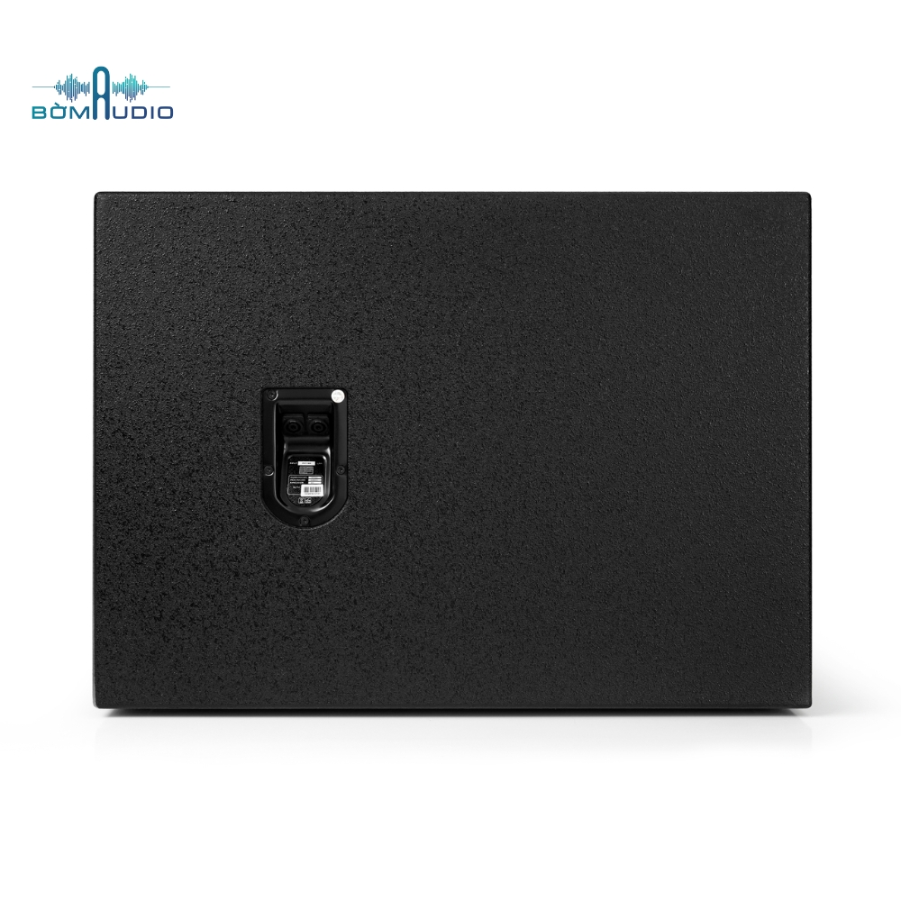 Thân loa được trang bị tay xách, chân cao su và lỗ cắm cọc, hỗ trợ di chuyển và lắp đặt thuận tiện. Mặt sau bố trí bảng thông số cùng các cổng kết nối tín hiệu tiêu chuẩn. Kích thước 632 × 570 × 650 mm và trọng lượng 76,1 kg mang lại cảm giác chắc chắn, phù hợp sử dụng cho sân khấu, hội trường và các sự kiện âm thanh chuyên nghiệp.