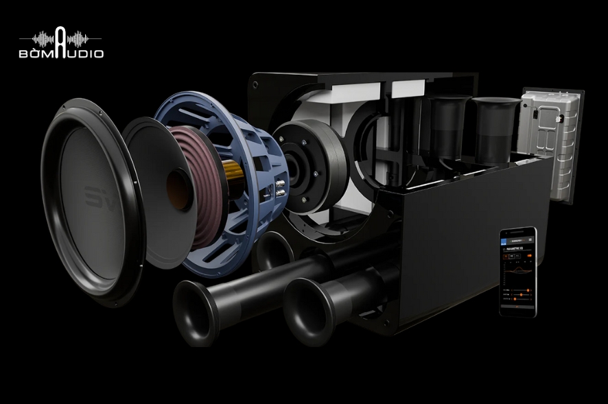Bên trong là cuộn voice coil kép 3 inch edge-wound quấn dây đồng tinh khiết, đặt trên lõi chịu nhiệt, mang đến khả năng kiểm soát hoàn hảo và hạn chế méo tiếng. Hệ thống từ lực mạnh cùng cơ chế tản nhiệt chủ động giúp duy trì hiệu suất ổn định, dù loa hoạt động trong thời gian dài.