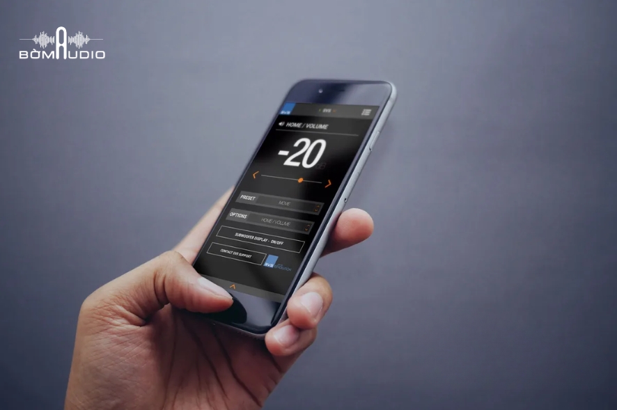 Loa hỗ trợ điều khiển qua ứng dụng SVS Subwoofer App (tương thích iOS/Android), giúp tinh chỉnh toàn bộ cài đặt ngay trên smartphone. Ứng dụng cung cấp nhiều preset âm thanh như phim, nhạc, hoặc tùy chỉnh cá nhân, cùng tính năng Room Gain Compensation tự động tối ưu đáp tuyến bass theo không gian phòng.