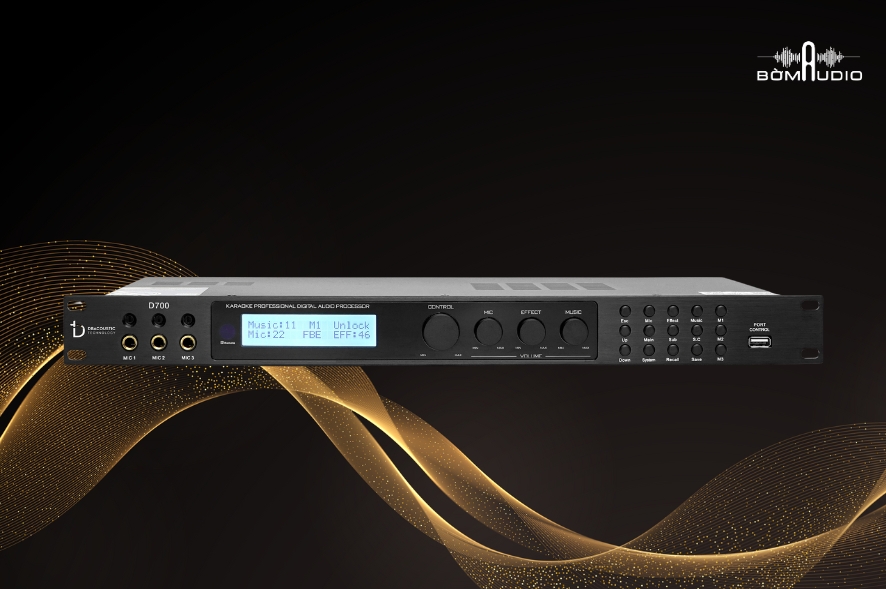 DBacoustic D700 Premium là vang số thế hệ mới, nâng cấp toàn diện từ dòng S690, tích hợp công nghệ xử lý âm thanh tiên tiến. Khả năng tùy chỉnh nhạc nền, giọng hát và hiệu ứng vang linh hoạt giúp D700 Premium trở thành lựa chọn lý tưởng cho karaoke cao cấp và phòng hát kinh doanh.