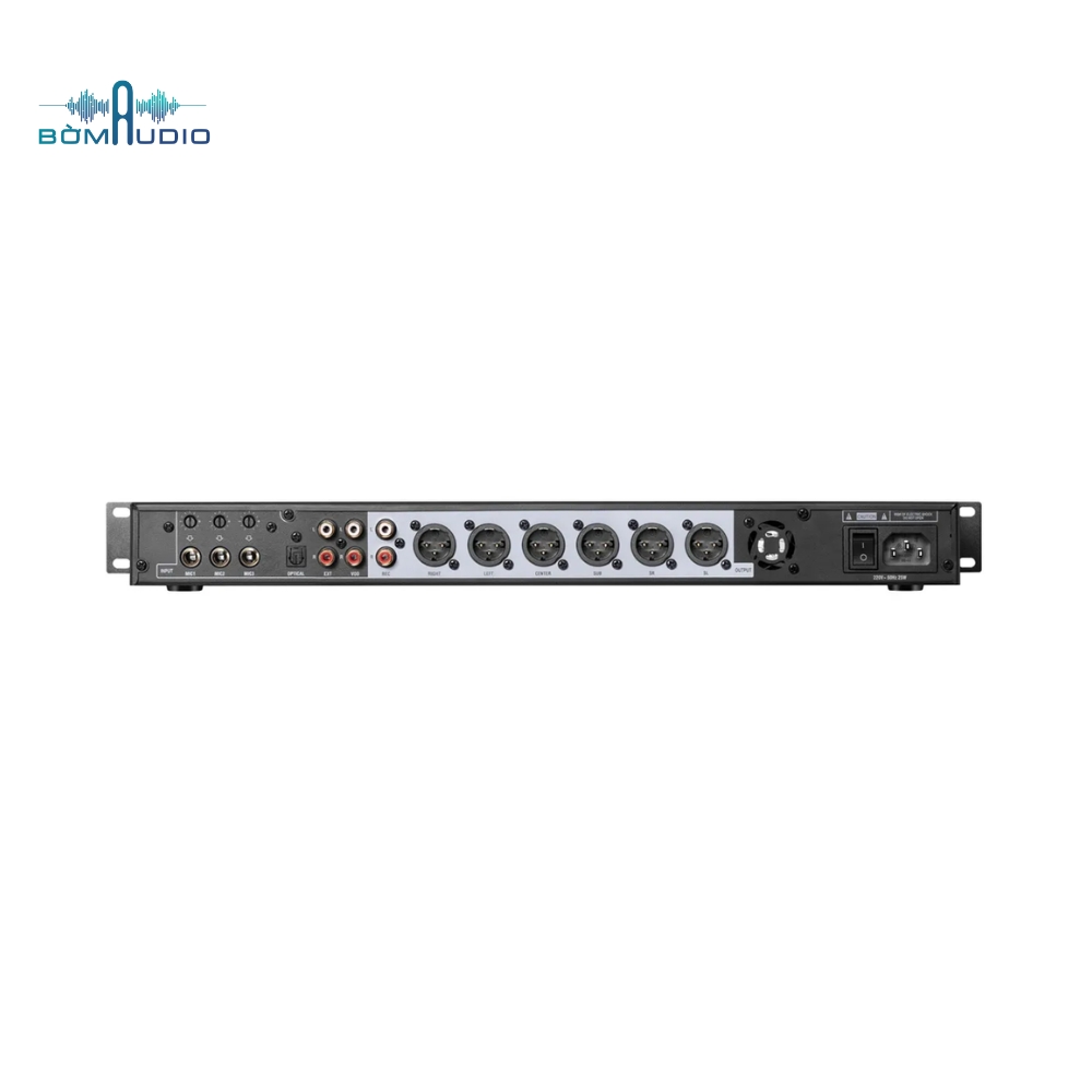 - 6 kênh output (L/R/C/Sub/Surround L/R): PEQ 5–10 băng tần + compressor riêng